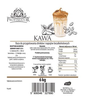 Baza do drinków i bezalkoholowych koktajli Profimator Kawa, box 6 kg Z bazy Profimator można przygotować drinki i koktajle, które charakteryzują się naturalnym głębokim aromatem kawy. Doskonały do produkcji domowych koktajli i innych napojów alkoholowych, a także do deserów i napojów bezalkoholowych. Producentem jest polska firma Belfood Sp. z o.o. Produkt jest pasteryzowany. Składniki: cukier, woda,…
